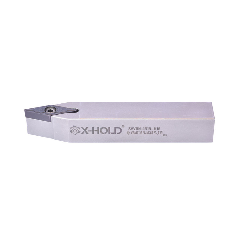 هلدر روتراشی مستقیم (رنده تراشکاری) X-HOLD جهت عملیات External turning مورد استفاده قرار می گیرد و اینسرت (الماس) VBMT 16 بر روی آن نصب می گردد که قابلیت تعویض مجدد برای آن در نظر گرفته شده است. ابعاد این هلدر (طول و عرض) 16X16 mm می باشد و ارتفاع آن 100mm است .